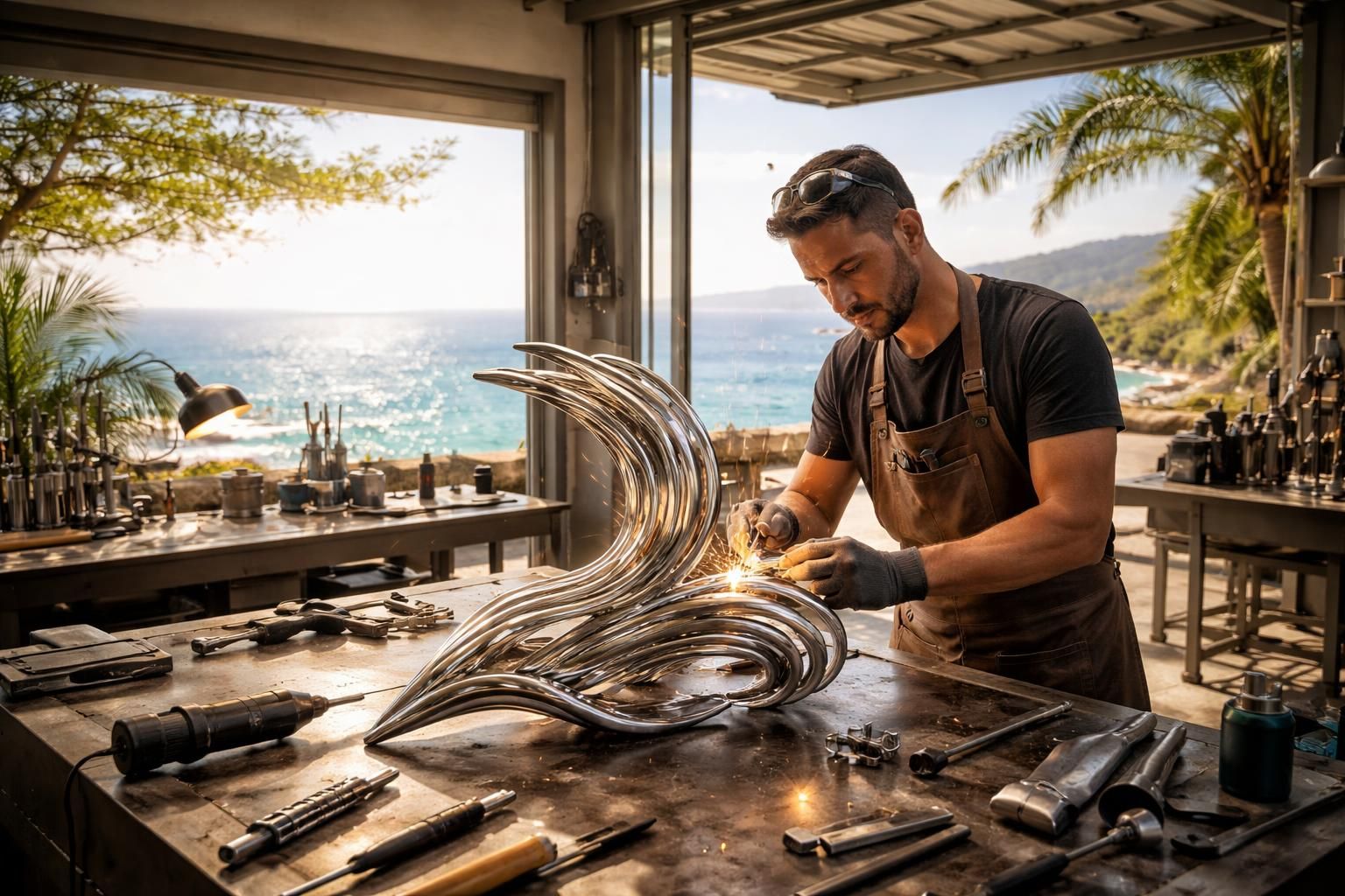 Au fil des années, l’entreprise développe son parc machines, intégrant des outils modernes tels qu’une cabine de peinture et une table plasma. Ce dernier équipement permet des découpes de métal avec une précision millimétrique, favorisant des designs audacieux et adaptés aux réalités du territoire. Grâce à cette évolution, MDOI franchit le cap des cent projets livrés, établissant des partenariats avec divers architectes. Actuellement, l’entreprise emploie une trentaine de collaborateurs et commence même à exporter vers les îles voisines comme Mayotte et Maurice.